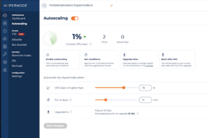 Hypernode’s Autoscaling solution allows customers to automatically upgrade and downgrade their hosting plan in line with the set criteria. The benefit is that they only pay for the resource difference between the upgraded plan and the initial one. This is especially valuable when seasonality hits e-com businesses and they need to quickly adjust their server capacity to deliver optimal performance to a rapidly growing number of customers.