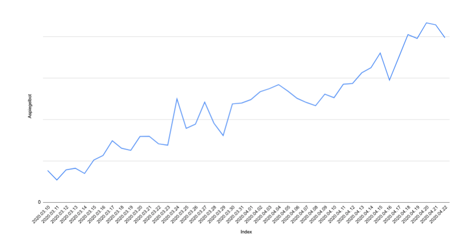 The graph below shows the activity of the Huawei AspiegelBot across our Hypernode hosting platform. The traffic of the bot increased with a stunning 460% over the past month.