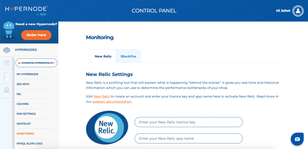 New Relic and Blackfire are profiling tools that explain what is happening “behind the scenes” on your Hypernode. You can use them to determine the performance bottleneck of your shop. It is now possible to enable New Relic and Blackfire through the Control Panel and the Command Line Interface (CLI).