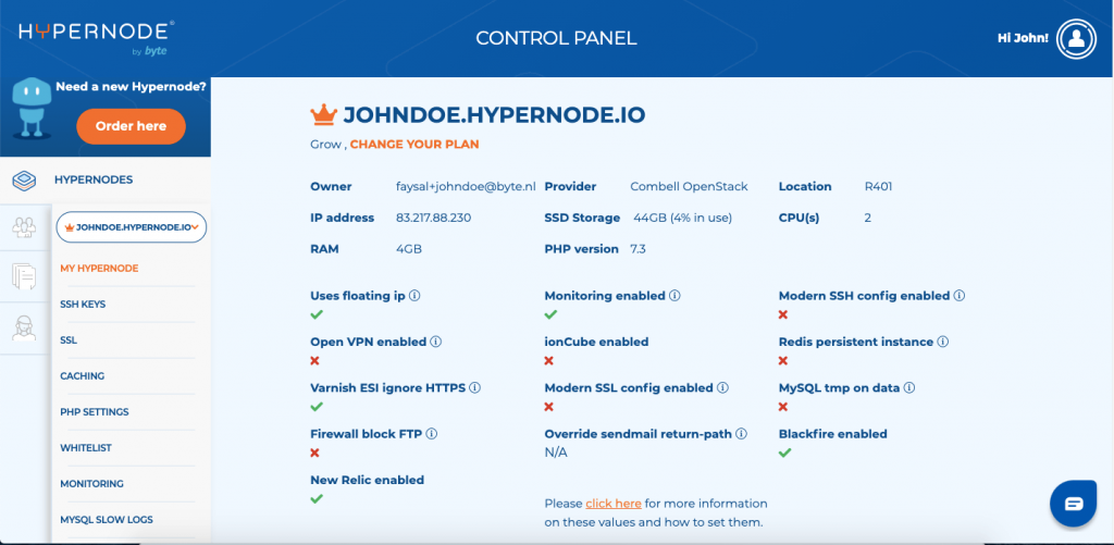 We released a new version of the ‘My Hypernode’ page which introduces an overview of settings applied to your Hypernode as well as an overview of graphs showing the performance of your Hypernode.