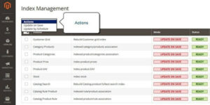 Bij Magento 2 staat standaard ingesteld dat het re-indexen van producten en categorieën automatisch gedaan wordt bij het updaten van een product of categorie. Het probleem van het re-indexen is dat het de omgeving een stuk trager maakt op het moment van re-indexen. In plaats van Magento de re-indexering te laten uitvoeren bij een update, kan je dit beter handmatig doen op een tijdstip die je zelf uitkiest. Je doet dit via het menu system en vervolgens ga je naar index management.