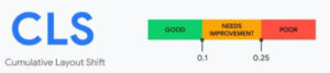 In bovenstaande afbeelding zie je dat een goede CLS score lager is dan 0.1. Hoe groter de verschuiving/verandering van de layout, des te meer impact dit heeft op de score.